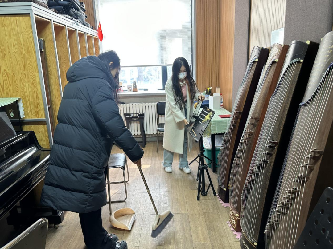 3月17日,音乐学院同学们积极参加了校内进行的志愿服务活动。同学们走进各个琴房,打扫卫生,整理文件、曲谱等。经过同学们一番不懈的努力,学校内各个琴房变得干净、整洁,井然有序,为同学们营造了更加舒适的专业练习环境。