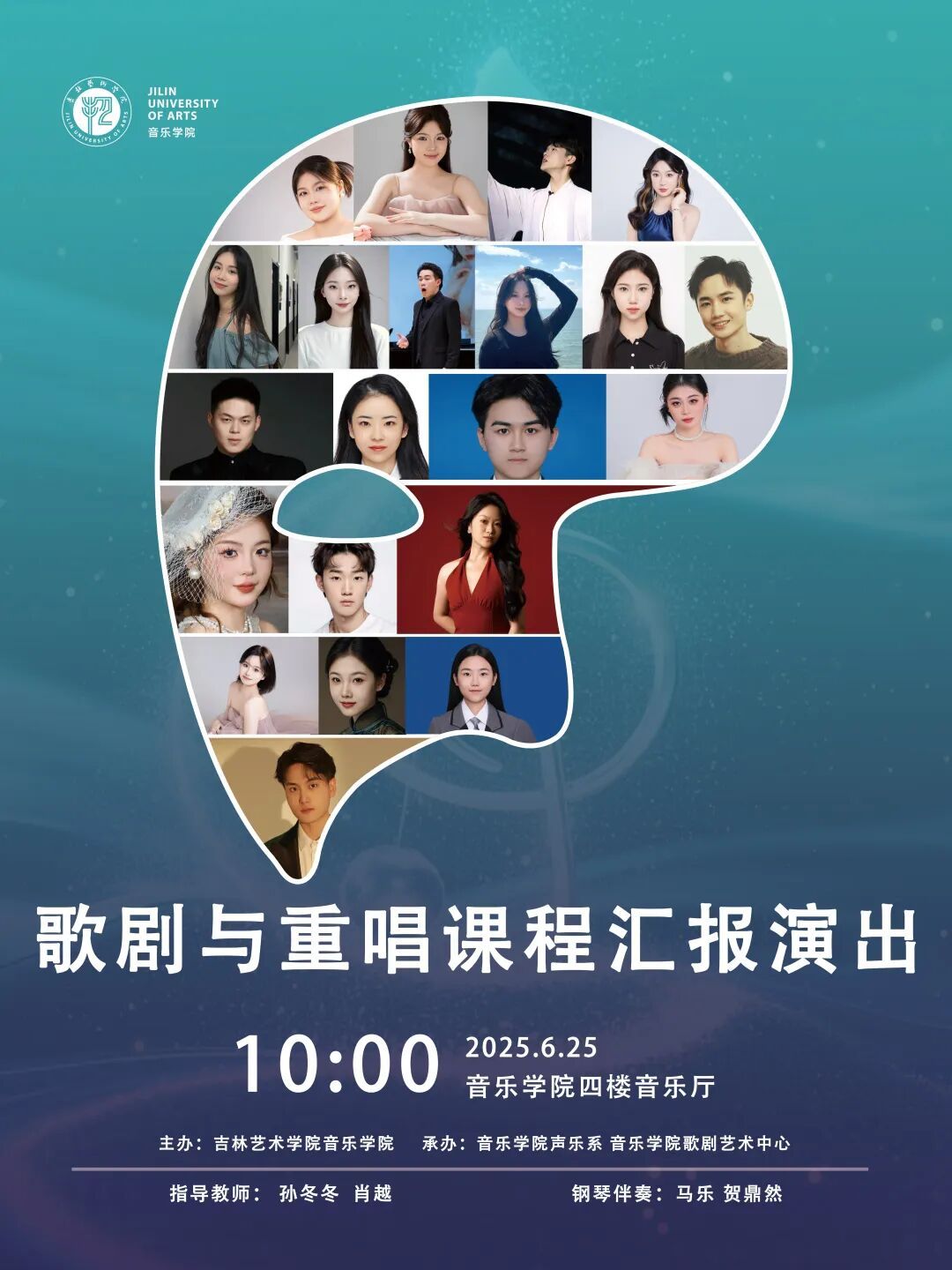 6月25日10:00,音乐学院歌剧与重唱课程汇报音乐会在学院四楼音乐厅如期举行。本次音乐会作为声乐表演专业重要的教学实践环节,集中呈现了《党的女儿》《沂蒙山》《费加罗的婚礼》等经典歌剧的精选片段,展现了学生们阶段性的专业学习成果。