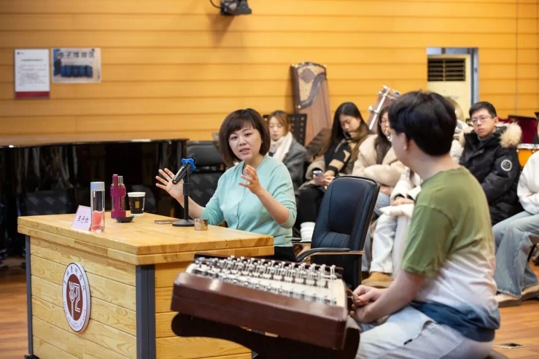 王老师特别强调演奏者的艺术诠释与文化理解。在与交响乐队合作时,民乐演奏者需建立充分自信,在音量、肢体与心理层面强化表现力,主动统领音乐空间。王老师鼓励学子们不仅关注技术细节,更要深入作品背后的文化脉络与精神境界,通过持续的学习、观察与思考,在演奏中实现从“形似”到“神至”的艺术跨越。