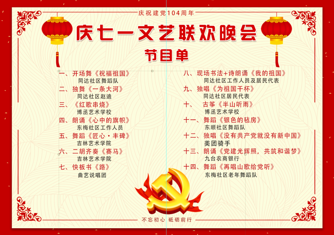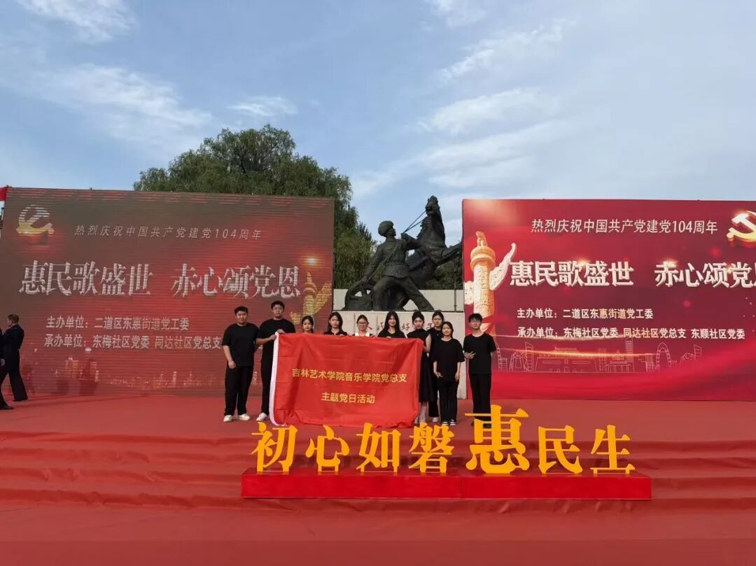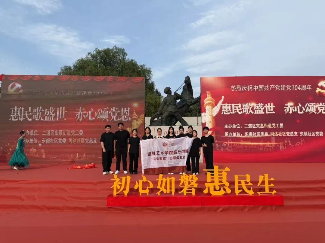 初夏的阳光炽热明亮,恰似我们对党的滚烫深情。在庆祝中国共产党成立104周年的重要时刻,吉林艺术学院音乐学院“音你而在” 志愿者社团在指导教师邢依楠的带领下,于2025年6月26日奔赴东梅社区与荣光街道,以民乐之韵为笔,书写献给党的生日贺礼 。